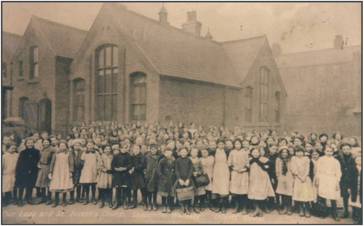 1870 – There had been a great increase in the Catholic population and the land in Wheatland Lane was purchased for £600. Mrs Clarkson of Orrell House, Seacombe donated £500 and Bishop Brown contributed £100. A mortgage of £1500 was approved towards building costs and money was raised through weekly collections and private donations.
