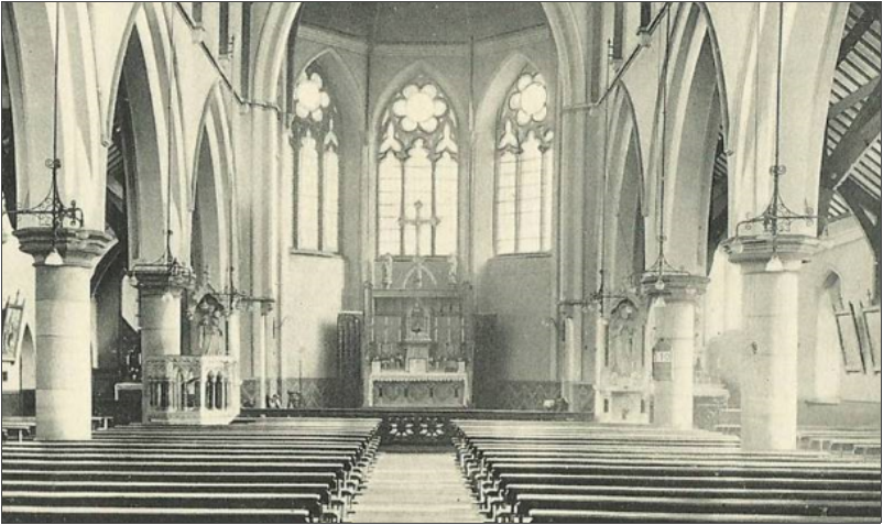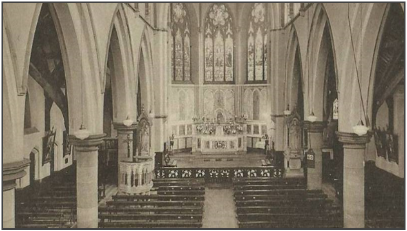 1888 – The foundation stone was laid on 5th August and the church solemnly opened on 26th July 1889. The church was very simple with a small altar, plain walls, plain glass windows, simple benches and gas lighting!