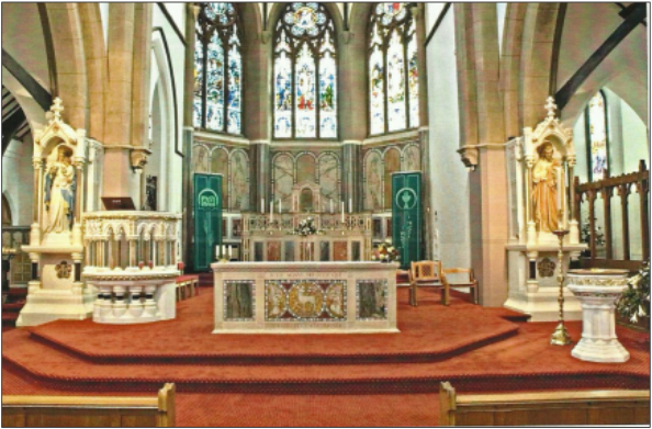 1975 – Following the reforms of the 2nd Vatican Council the church was re-ordered with the main altar relocated to the front of the sanctuary just below the great arch and a new marble reredos was erected at the back of the sanctuary